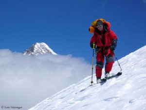 Update 24. Juli: Luis hat Details seiner  erfolgreichen Besteigung des Gasherbrum I bekanntgegeben. Danach stieg er gemeinsam mit dem 52 Jahre alten Italiener Gianpaolo Corona im Alpinstil auf. Am Gipfeltag hätten sie durch wadentiefen Neuschnee spuren müssen. Nach gut 13 Stunden hätten sie den höchsten Punkt erreicht. Luis versuchte eine Skiabfahrt vom Gipfel, musste sie aber im so genannten „Japaner-Couloir“ wegen zu großer Lawinengefahr unterbrechen. „Eine Entscheidung, die mir sehr schwer gefallen ist. Schließlich lässt man ungern das Filet übrig. Aber in diesem Fall gab es keine Diskussion“, berichtet Stitzinger und zieht folgendes Resümee: „Ein frohes Ende für eine äußerst schwierige Saison im Karakorum.Nach mehreren Wochen nahezu ununterbrochenen Schneefalls zu Beginn der Saison im Juni, mussten viele Expeditionen unverrichteter Dinge wieder abreisen. Auch nachdem sich das Wetter wieder beruhigt hatte, sorgte der viele Schnee und die schlechten Bedingungen für so wenig Gipfelerfolge an den pakistanischen Achttausendern wie selten. Umso glücklicher dürfen wir uns schätzen, dass wir es trotz alledem, nur zu zweit, geschafft haben!“