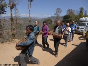 Diese Straßensperre ist keine gewöhnliche. Fünfhundert Meter vor dem Schulgelände in Thulosirubari, 70 Kilometer östlich der nepalesischen Hauptstadt Kathmandu, endet für uns die Fahrt im Jeep. Acht Musiker stehen mitten auf der staubigen Piste im Dorf. Als Ralf Dujmovits – der erste und bisher einzige deutsche Bergsteiger, der alle 14 Achttausender bestiegen hat – und ich aus dem Auto steigen, beginnen sie, auf ihren traditionellen Instrumenten für uns zu spielen. Hinter der musizierenden Dorfkapelle steigen wir die letzten Meter zur Schule hinauf.