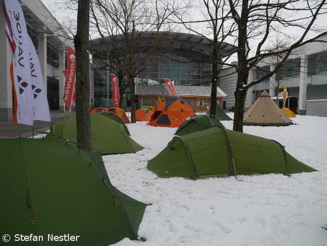 „Ja, das ist anstrengender als eine Expedition“, sagt Luis Stitzinger, als er mich dabei erwischt, wie ich mich auf der ISPO in München auf eine Treppe setze, um mich ein wenig auszuruhen. Auf der weltgrößten Sportartikelmesse traf ich nicht nur meinen Expeditionsleiter vom Kokodak Dome wieder, sondern hatte auch noch viele weitere interessante Begegnungen (von denen ich euch demnächst in loser Reihenfolge berichten werde). Diese Kontakte, die sich auf der ISPO alljährlich fast von selbst ergeben, sind mir eigentlich wichtiger als die ausgestellten Produkte. Nichtsdestotrotz habe ich mich natürlich auch ein wenig umgesehen: