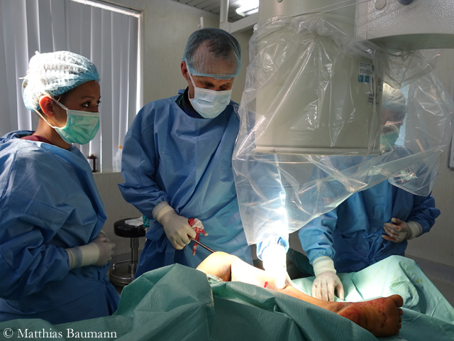 Ich war die meiste Zeit über im Operationssaal. Wir haben vor allem Knochenbrüche an Armen und Beinen versorgt. Ab und zu habe ich auch in der Notaufnahme mit angepackt.