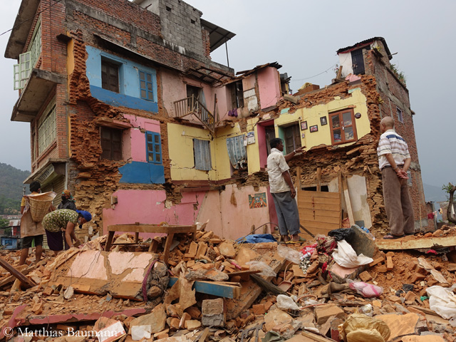 Jemand hat mir kürzlich gesagt: Nepal wurde um 20 Jahre zurückgeworfen. Ich war auch mehrfach außerhalb der Stadt unterwegs. Es ist unglaublich, was dort alles kaputt gegangen ist. Ich denke, es wird auf jeden Fall Jahre dauern, das Land wieder aufzubauen. Auf der einen Seite spürt man den großen Zusammenhalt der Nepalesen. Auf der anderen Seite sind sie alle traumatisiert. Gestern sagte mir jemand: „We suffer!“ Wir leiden.