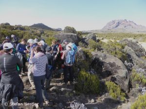 Ein Teil der Gruppe, zu dem auch ich gehörte, stieg noch bis 3850 Meter auf, getreu dem alten Motto „Climb high, sleep low“. Für den morgigen Dienstag ist ein weiterer Schritt zur Akklimatisierung geplant. Wir werden Richtung Mawenzi Ridge aufsteigen, voraussichtlich bis auf eine Höhe von 4300 Metern. Anschließend geht es zurück zur Horombo Hut, wo die Ärzte der Philipps Universität Marburg die nächsten Blutproben für ihre Studie zur Höhenkrankheit nehmen werden.