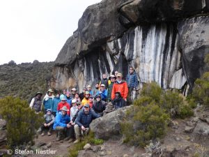 Heute sind wir noch einmal bis auf eine Höhe von 4100 Metern aufgestiegen, um uns weiter zu akklimatisieren. Ziel der gemütlichen Wanderung waren die „Zebra Rocks“, eine beeindruckende schwarz-weiß gestreifte Felsformation. „Wir haben uns einen Tag länger auf 3700 Meter aufgehalten, als die Gruppen es normalerweise machen. Ich glaube, das hat sich ausgezahlt,“ sagt Harald Renz. „Viele, die gestern noch über Kopfschmerzen und Schlafstörungen klagten, fühlen sich heute gut.“