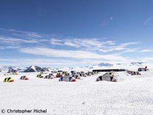 „Die Moral schwindet, das ist doch klar“, sagt mir Dominik Müller, Chef des deutschen Expeditionsveranstalters Amical alpin, als ich mit ihm über die Situation im Mount-Vinson-Basislager spreche. Wie berichtet, sitzen dort seit nun schon anderthalb Wochen insgesamt 48 Bergsteiger im schlechten Wetter fest, darunter auch ein fünfköpfiges Amical-Team. Die Lebensmittel werden langsam, aber sicher knapp. „Unser Weihnachtsessen war skurril, süßer Kartoffelbrei mit Marmelade und Zimt“, schrieb Jürgen Landmann, einer der deutschen Bergsteiger, am ersten Weihnachtstag auf Facebook. „Wir haben uns aus Schnee eine kleine Kapelle und einen Weihnachtsbaum gebaut. Auch ein Gruppenbild mit allen 48 Bergsteigern hier im Basislager ist entstanden.“