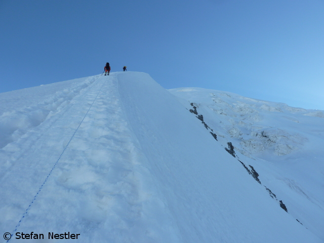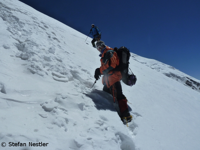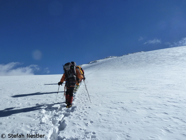 Beim Bergsteigen in großer Höhe bist du dein eigener Wasserträger. Im wörtlichen, wie im übertragenen Sinne. Ein dahingemurmeltes „Quäl‘ dich, du Sau!“ hilft manchmal. Auch mir am Putha Hiunchuli, dann nämlich wenn ich am Limit war. Wie das aussah? Schaut mal in die Bilder, die meine Weggefährten geschossen haben!