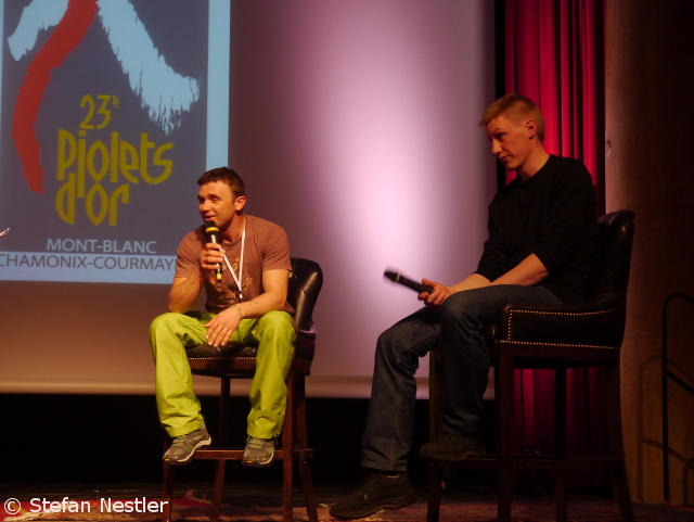 The third team that was nominated for the Piolets d’Or, the Golden Ice Axe, comes from Slovenia: Marko Prezelj, Ales Cesen and Luka Lindic were the first who climbed the steep North Face of 6,657-meter-high Hagshu in Northern India. In 1991, Prezelj and his compatriot Andrej Stremfelj had received the first Piolet d’Or ever, for their climbing of the South Face of the eight-thousander Kangchenjunga in Nepal. Later Prezelj had criticized those responsible for the Piolet d’Or. And he is still sceptical: „I think it’s impossible to judge love and passion in the mountains“, the 50-year-old said in Chamonix.
