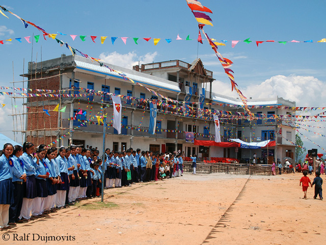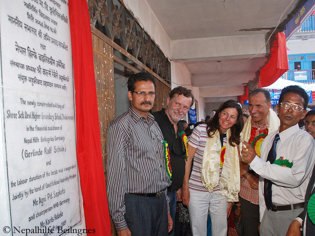 Gerlinde and Ralf at the opening in 2009, on their right Austrian climber Theo Fritsche who helped to build three schools with Nepalhilfe Beilingries