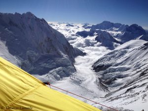On 7 May, I set off for my ascent and finally reached Camp 3 on Makalu La on 10 May. Unfortunately Karl had made a mistake of one day, so that I was stuck in the storm for three days. In the afternoon of 12 May, however, the storm calmed down and I was able to move my tent to Camp 4 (7,600 m).