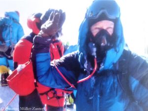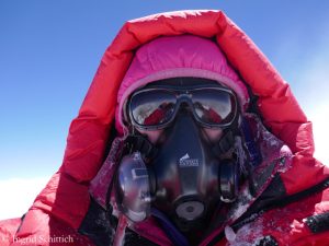 “During the ascent I only thought of the effort. Thoughts came up like I’ll never do that again,” recalls the physician from Munich. “On the summit I was happy and felt a deep satisfaction that I had achieved my goal.” Ingrid really enjoyed the moment, because she and her four companions from the team of the Swiss expedition operator “Kobler & Partner” were en route on the Northeast Ridge “without traffic jams or obstruction by other climbers. Also on the summit we were alone.”