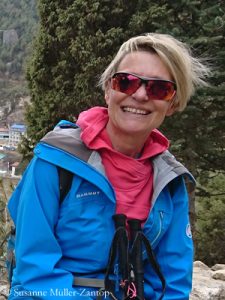 Susanne Müller-Zantop had also dreamt to experience the moment on the highest point of the world this way. But things turned out very differently. “I was happy and undisturbed during my ascent, I only met a few people,” says the German entrepreneur, who lives in Zurich in Switzerland. “The summit was a shock, first I stared at a poster for Chinese women’s cosmetics. There was hardly any place, it was so crowded. My Sherpa pulled a Lama’s coat, sword and cap out of his backpack, quickly put everything on and filmed himself. I was disappointed, there was no opportunity for rest, enjoying the panorama or even devotion.” After a quarter of an hour Susanne fled from this “marketing platform,” as she calls it.