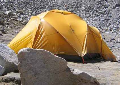 Gegen Mitternacht wachte ich von einem Mordsknall auf. Ich konnte das Geräusch erst nicht einordnen, dachte, es habe sich an einem der Berge ein Fels gelöst, der nun talwärts donnere. Nichts wie raus! Wenn du überhaupt eine Chance hast, dann außerhalb des Zelts.