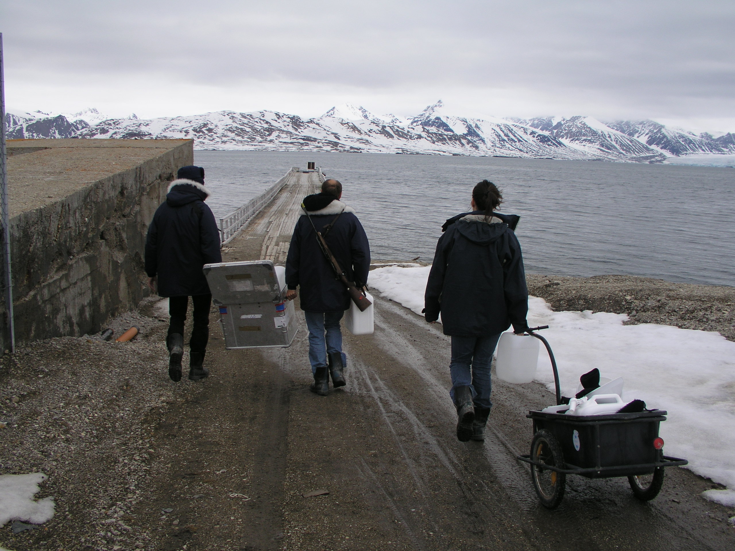 As I packed up to prepare to leave the Helmer Hanssen at the Ny Alesund research station, Paul was giving his instructions to the scientific team. Some were leaving with me, others staying on for the next section. Coordinating the cleaning of the laboratory and deck areas still well splattered with mud, then the packing up and labeling of the samples and equipment, is a major operation. I thought it better not to whinge about fitting my cameras, recorders and Arctic gear into their bags, which somehow seemed to have shrunk over the past week.