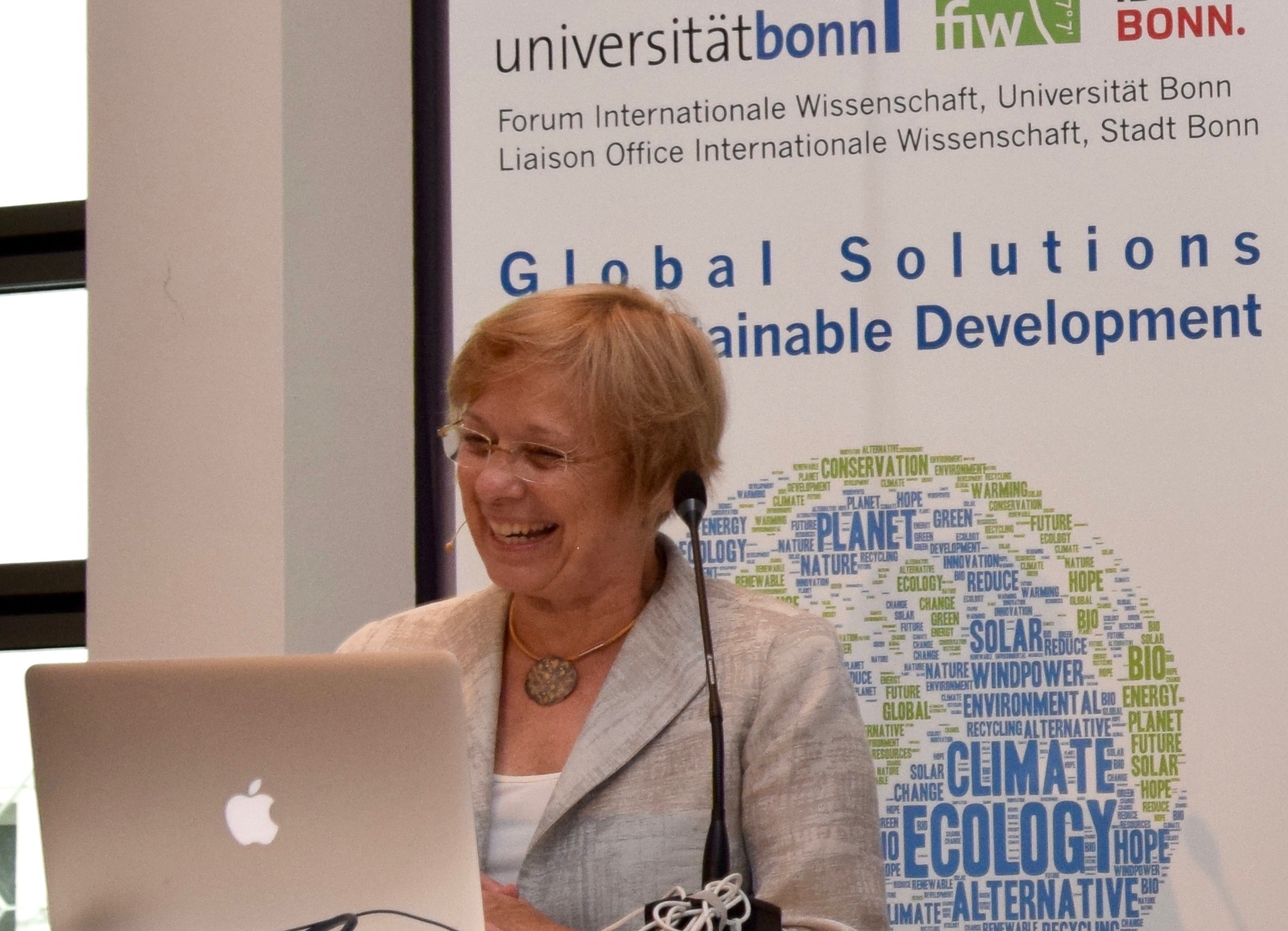 The University and the City of Bonn have been running a series of lectures by members of the Scientific Advisory Board of the United Nations Secretary-General Ban Ki-Moon this year, under the heading “Global Solutions for Sustainable Development”. This week, it was the turn of Susan Avery, who was President and Director of the Woodshole Oceanographic Institution in the USA until last year. She has been on the advisory board to Ban Ki-Moon for the last three years and she and the other advisors are just finishing their report, so it was great to have the opportunity to talk in length.