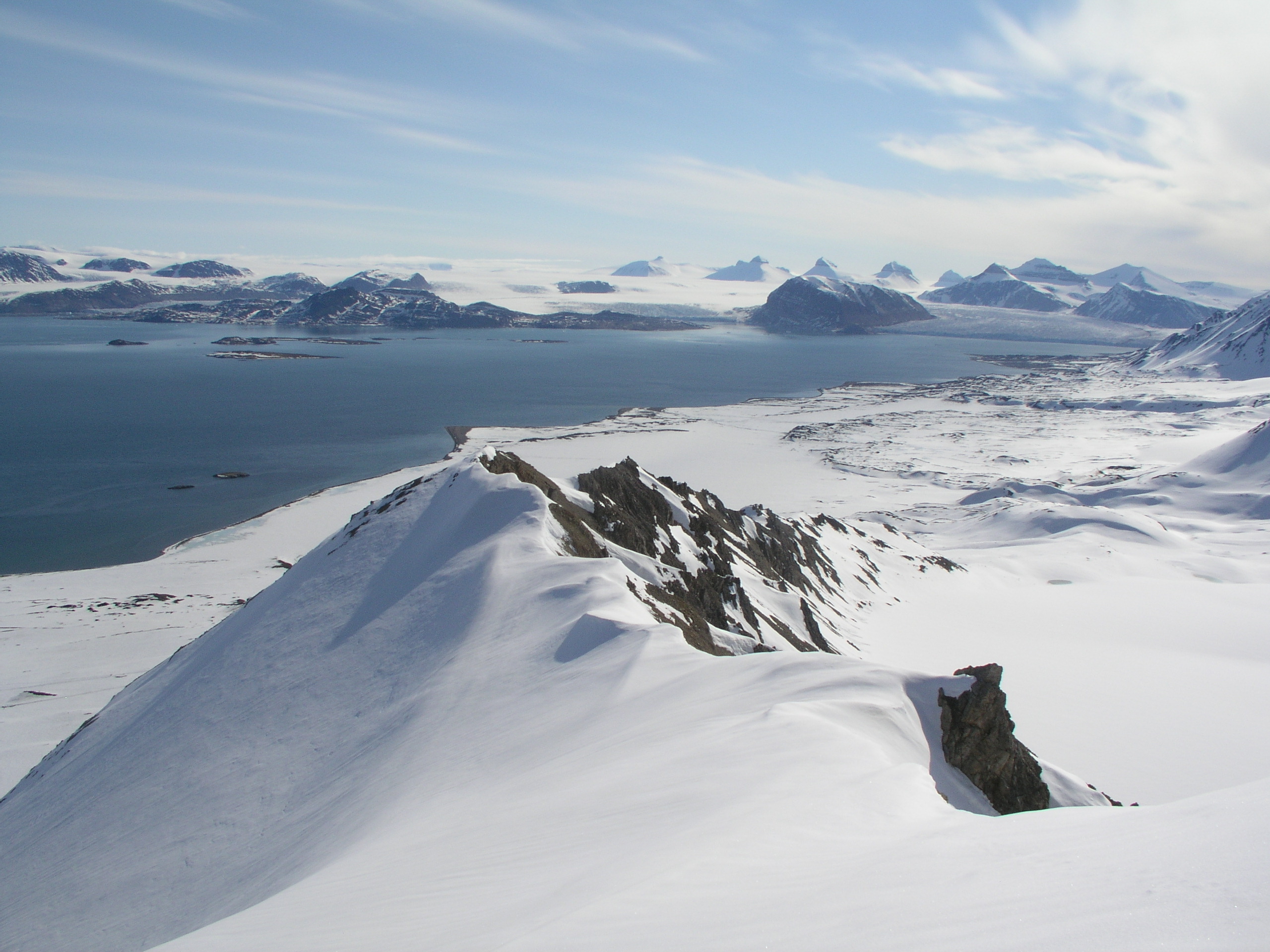View from Mount Zeppelin over the Kongsfjord, Svalbard, above Ny Alesund research village. (Pic. I.Quaile)