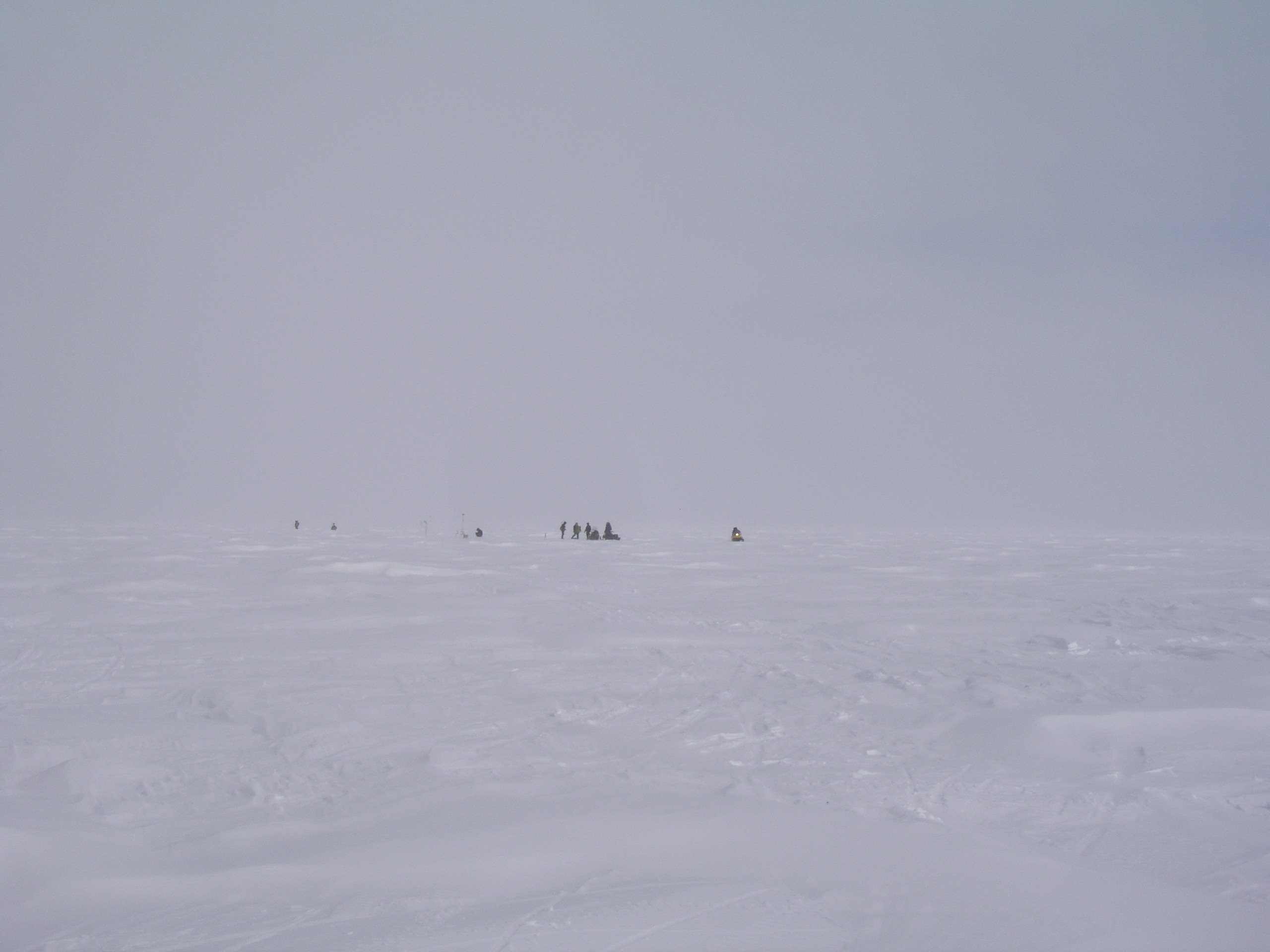 Next day the Royal Canadian Mounted Police in Resolute Bay was alerted by a distress signal from the pair, approximately 200 kilometres soiuth of Bathurst Island. The search aircraft sighted one of their sleds, partly unpacked, on the ice with their sled dog, close to a hole in the ice. The other sled was in the water with various bits of equipment.The search and rescue venture was eventually abandoned. The dog has been rescued, but the operation to locate Marc, Philip and their equipment and bring it home, has been halted by bad weather.