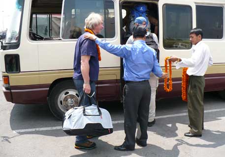 Am Flughafen der nepalesischen Hauptstadt empfängt uns Expeditionsleiter Ralf, der sich schon seit über zwei Wochen in Nepal aufhält. Während wir auf unsere Visa gewartet haben, hat er bereits das gesamte Gepäck zusammengesucht. Und oh Wunder: Alle Taschen, Tonnen und Säcke sind wohlbehalten eingetroffen. Namaste Kathmandu!