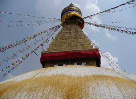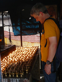 Immer noch beunruhigt? Grundlos: Erstens habe ich heute an der Stupa von Bouddhanath, in der angeblich Asche von Buddha liegt, ein paar Butterlampen entzündet. Und zweitens, wie gesagt: die Piloten sind nüchtern. Darauf könnt ihr einen trinken!