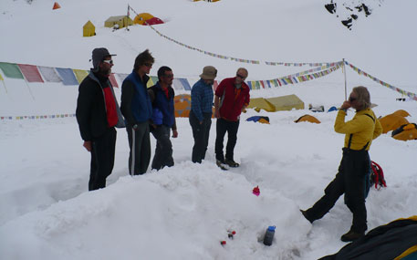 Dort wurden Ralf, Hiro, Pasang und Karma bereits von den anderen Teammitgliedern erwartet, die natürlich neugierig waren, was das Höhentief in Lager zwei und darüber angerichtet hatte.