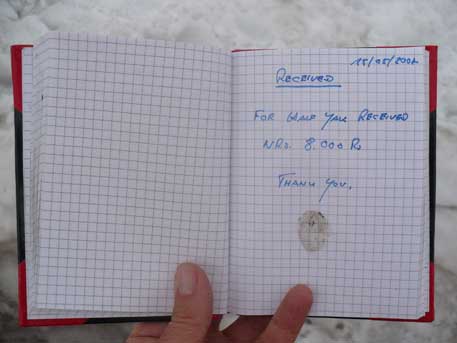 P.S. Für alle, die sich gestern beim Ansehen des letzten Fotos gefragt haben, warum es wohl bald Yak-Steak geben sollte, hier die Auflösung: Ralf hatte Nachschub an Lebensmitteln geordert, unter anderem ein halbes Yak. Nach dem Genuss der Steaks am Abend – „very well done“, sprich kauintensiv – wurde mit großer Ausdauer und unter fortwährendem Gelächter die Frage diskutiert, wie alt wohl dieses halbe Yak war. Eine geschäftstüchtige Tibeterin hatte Ralf das Fleisch für 8000 Rupies, gut 70 Euro, verkauft. Das Geld quittierte sie per Fingerabdruck.