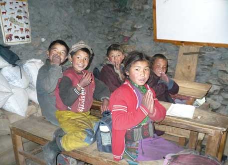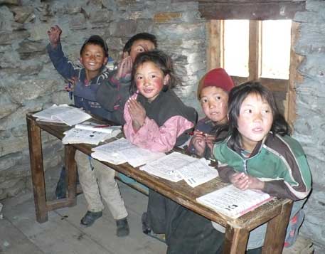 „Die normalen Bücher werden von der Regierung zur Verfügung gestellt“, sagt Tsering. Der 21- Jährige ist einer von zwei Lehrern der Dorfschule. „Probleme gibt es nur wenn wir andere Unterrichtsmaterialien wie etwa Übungshefte brauchen.“ Dann ist die Schule auf Spenden von Trekkingtouristen und Bergsteigern angewiesen, die Sama besuchen.