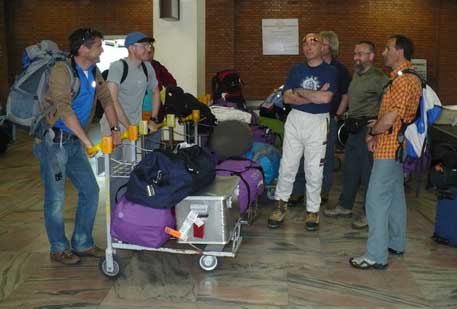 Am Flughafen der nepalesischen Hauptstadt empfängt uns Expeditionsleiter Ralf, der sich schon seit über zwei Wochen in Nepal aufhält. Während wir auf unsere Visa gewartet haben, hat er bereits das gesamte Gepäck zusammengesucht. Und oh Wunder: Alle Taschen, Tonnen und Säcke sind wohlbehalten eingetroffen. Namaste Kathmandu!