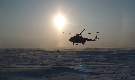 Wir hatten von Victor Boyarsky, dem Leiter der russischen Eisstation Borneo und einem der besten Arktiskenner weltweit, per Satellitentelefon die Information erhalten, dass wir gegen 10.30 Uhr abgeholt würden. Doch schon eine halbe Stunde früher hörten wir das Dröhnen des Helikopters.