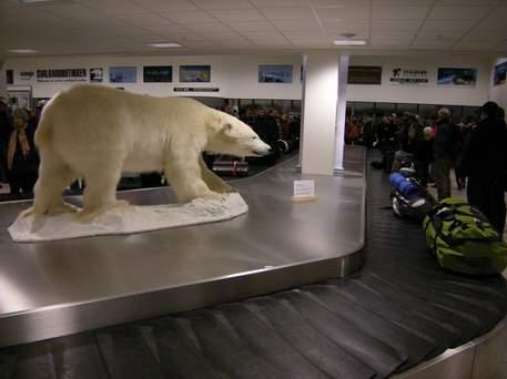 An Bord des Flugzeugs befand sich eine bunte Mischung aus Spitzbergen-Besuchern. In meiner Sitzreihe etwa saß eine junge Visagistin, die erst am Morgen erfahren hatte, dass sie zu einem Foto-Shooting in die Arktis aufbrechen sollte. „Ich weiß noch gar nicht, welches Make-Up ich den Models auftragen soll, damit ihre Nasen nicht so rot aussehen.“ Daneben hatte ein junger Engländer Platz genommen, der zu einem Expeditionsteam der Royal Geographic Society gehörte. Die 20 Studenten werden zehn Wochen lang auf der Inselgruppe zelten, die Eisfläche kartieren und andere Forschungsaufträge ausführen.