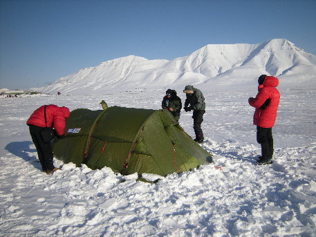 Erster Zeltaufbau im Eis