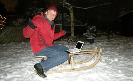 Bewegliche Teile neigen dazu einzufrieren. Also dachte ich zunächst daran, mit einem Netbook, ohne sich drehende Festplatte, mit einem Festkörperlaufwerk ausgestattet, zu arbeiten. Freundlicherweise überließ mir ein Hersteller ein Gerät zu Testzwecken. Anfang Januar fiel das Thermometer selbst in Köln nachts auf Werte um minus 15 Grad. Also ließ ich das Netbook auf unserer Terrasse im Freien übernachten.