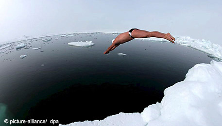 Schwimmbad Nordpol: Im Juli 2007 schwimmt der Brite Lewis Gordon Pugh knapp 19 Minuten lang im eiskalten Wasser