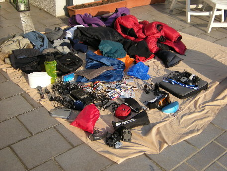 Dann packe ich den Rucksack mit den technischen Geräten, die ich für die Berichte aus dem Eis benötige, wieder aus. Noch einmal überprüfe ich das Gepäck anhand der Checkliste. Alles da, die Fotoapparate und Aufnahmegeräte samt Kabelage wandern wieder zurück in den Rucksack. Kurz darauf meldet sich der Nervling wieder: „Hast du auch die kleinen Kopfhörer eingepackt?“ Ja, sicher. Irgendwo dazwischen müssen sie doch stecken. Ich finde sie nicht auf Anhieb. Wieder alles heraus. Ach, da sind sie ja. Und so weiter.