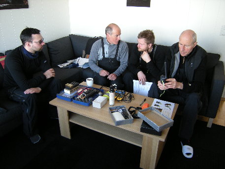Jetzt liegt das gesamte Material im Ferienhaus. Jeder hat seine eigene Ecke, damit nichts durcheinander gerät. Morgen Abend werden wir die Ausrüstung zum Flughafen bringen, damit sie bereits in den russischen Flieger verladen werden kann. Am Sonntag sind wir auf den zweiten Flug des Tages zur Eisstation Borneo gebucht.