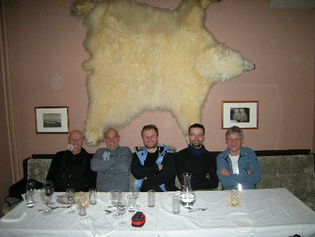 Nachdem wir im Flughafengebäude unser Gepäck eingesammelt hatten, fuhren wir mit dem Taxi zu unserem Ferienhaus. Es ist erst vor zwei Wochen fertiggestellt worden. Wir sind die ersten Mieter. Es riecht noch überall nach Holzlasur. Heute Morgen frühstückten wir in einem Hotel im Ort und machten uns dann auf den Weg zu Thomas` Materiallager. Dort wurde jedem von uns die noch fehlende Ausrüstung zugeteilt: Plastiktüten, die wir über die Socken ziehen, Schuhe, Überzughosen, Schlafsäcke, Matten, Skier, Thermoskannen, Becher, Pinkelflaschen. Nicht zu vergessen natürlich unsere Schlitten, die allesamt Namen haben. Eugen hat seinen aus nahe liegendem Grund „Slave“ getauft, Frank seinen nach der Freundin „Sylvia“. Arnolds Schlitten heißt wegen der Farbe des Packsacks „Blue“, der von Thomas wegen der länglichen Form des Geräts „Torpedo“ und meiner, wie bereits eingeführt, „Poldi“.