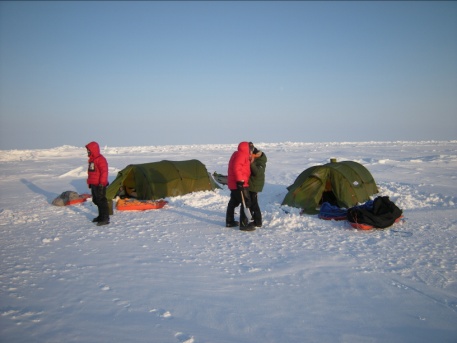 Wir haben uns die dicken, klobigen Handschuhe über die Finger gezogen und versuchen nun, die Knoten der Zeltschnüre zu lösen. Ich stoße an die Grenzen meiner Geschicklichkeit und streife die Handschuhe ab. Doch selbst bei diesen im Vergleich zur Nordpolregion wahrscheinlich noch milden Temperaturen rächt sich das sehr schnell. Ruckzuck kühlen die Finger aus. Nach jedem Knoten schlüpfe ich rasch wieder in die Handschuhe. Eine Mogellösung, die ich mir in den nächsten Tagen nicht mehr leisten kann.