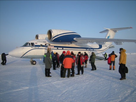 Zwei Stunden später sitzen wir mit etwa zwei Dutzend weiteren Passagieren in einer Antonow-Düsenmaschine. Die andere Hälfte des Kabinenraums ist mit Gepäck und Ausrüstung gefüllt. Nach einer halben Stunde Flugzeit lassen wir die Inseln Spitzbergens hinter uns. Endlos erstreckt sich nun bis zum Horizont eine Eiswüste.