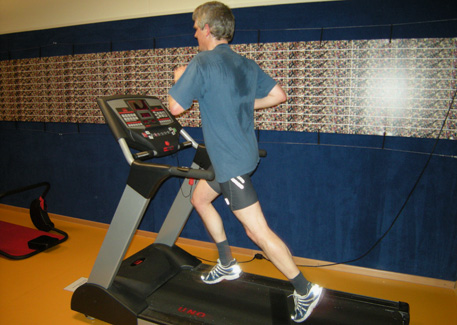 Es sieht drei bis vier etwa einstündige Einheiten pro Woche vor, eine Mischung aus Konditions- und Krafttraining. Um die Ausdauer zu verbessern, jogge ich. Wenn das Wetter es zulässt, führt meine Strecke von unserem Haus zum Rhein, entlang der Flusspromenade, über einen Deich und, nach einem Abstecher in die Rheinaue und in einen angrenzenden Park, wieder zurück. Geschätzte zehn Kilometer, gefühlt manchmal das Doppelte. Wenn es wieder einmal aus vollen Kübeln schüttet, jogge ich auf dem Laufband im Kraftraum der Deutschen Welle.