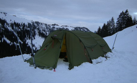 Der nächste Morgen, die Stunde der Wahrheit: Ich bleibe, wie vorgeschrieben, im Schlafsack, drehe mich zum Zelteingang. Wie war das gleich noch? Erst Hahn auf, dann pumpen? Nein, umgekehrt! Ich habe Schwierigkeiten, mit dem kleinen Feuerzeug an die Zündstelle des Kochers zu gelangen. Dann aber funktioniert alles so, wie es soll, und ich bin fast ein wenig stolz auf mich. Bis die Flamme für meinen Geschmack ein wenig zu hoch in den Zelthimmel sticht. Mein banger Blick geht nach oben. Kein Loch, Gott sei Dank! Das wäre aber auch zu peinlich gewesen.