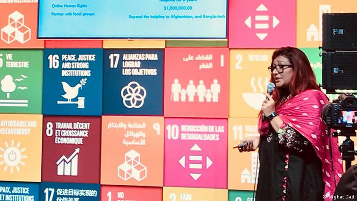 Nighat Dad is the founder of Digital Rights Foundation (DRF), whose helpline is assisting Pakistani women to fight against cyber harassment and online abuse. Dad presented her work at the Innovations Summit at the United Nations General Assembly (UNGA) in 2018.