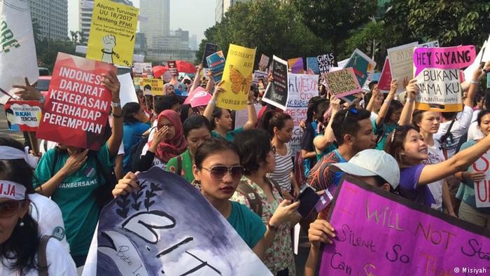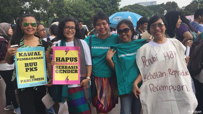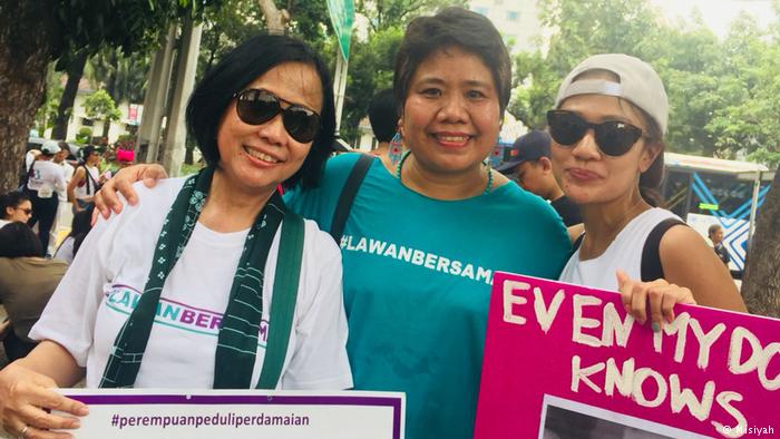 The motto is #LawanBersama or fight together. Women from many organizations demonstrated in the capital city of Jakarta and voiced their demands together.