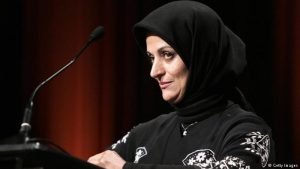 Iranian journalist Shahla Sherkat speaks after receiving an award at The International Women’s Media Foundation’s 2005