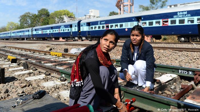 This photo taken on March 6, 2018 shows Neelam Jatav (R) with a colleague working on a railway track at the Gandhinagar railway station in Jaipur. Gandhinagar is India’s only interstate train station run entirely by women. These trailblazers are not just breaking new ground in conservative Rajasthan but upending social norms in India that assume a women’s proper place is in the home. India is one of the world’s fastest growing major economies but also has one of the lowest rates of female employment, and the trend is worsening.