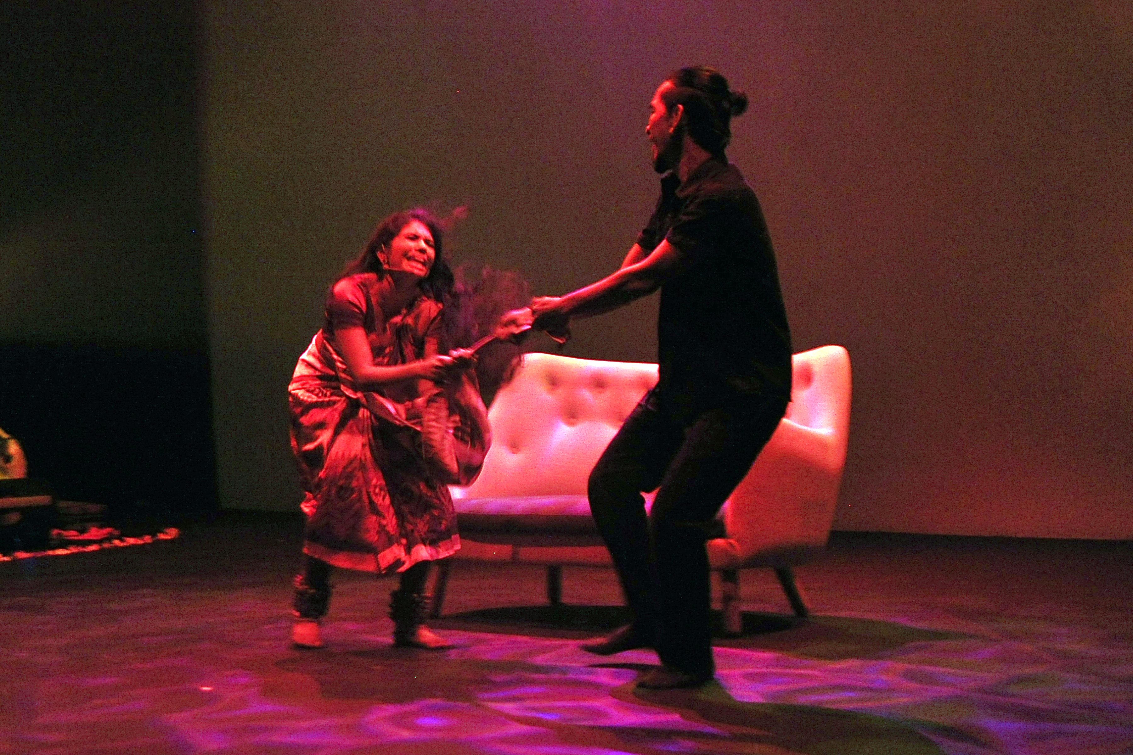Kamini Manikam in Lipstick 2, a new Age bharatanatyam Recital that carried he themes of sexual assault and gender equality. © Kamini Manikam