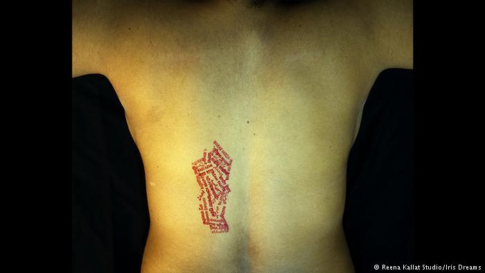 Reena Saini Kallat wants to transcend boundaries. Her work examines hybrid identities, fantastic animals, creatures that are half tiger and half goat. The above work, a woman’s bare back with stamped names, focuses on the Kashmir conflict, part of a series of works dedicated to the constantly changing boundaries in the territorial skirmish.