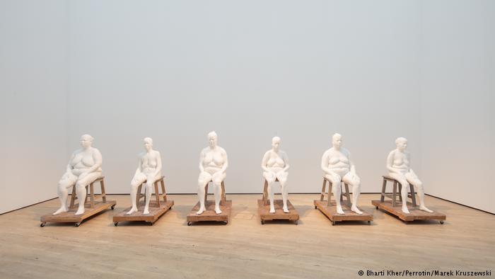 Bharti Kher is the only artist in the show who was not born in India. She was raised in Britain, where she felt she didn’t have a place in the art world – and moved to India when she was 23 years old. She enjoys and feels inspired by meeting people from all walks of life. Above: six plaster casts of prostitutes.