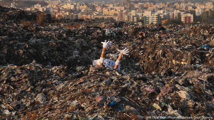 Tejal Shah discards norms as she created video installations with sex-crazed unicorn people; her work has, as a result, been censored in India. She plays with gender roles. Provocation is a part of her art. The above photo is from a video about sexuality: genderless figures emerge from a garbage dump, seeking to establish contact.