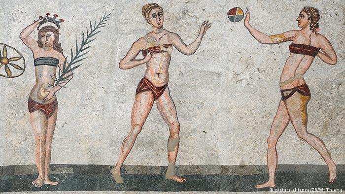 In reality, the French engineer didn’t invent the bikini at all. The idea of wearing scant bits of clothing goes back hundreds of years to the Romans. A fourth century mosaic at the Villa Romana del Casale on the island of Sicily shows Roman women playing sports – in ancient bikinis.