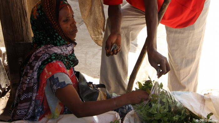Some nikisat is understated, as with this woman selling khat at a market in Dire Dawa. She only has a black dot on each cheek and two small vertical dashes on her forehead. Nikisat is also used on forearms, lower legs, and to darken the gums of the mouth. Another form of Ethiopian body marking is insosilla, a plant dye used to stain hands and feet, common in the northern Tigray region.