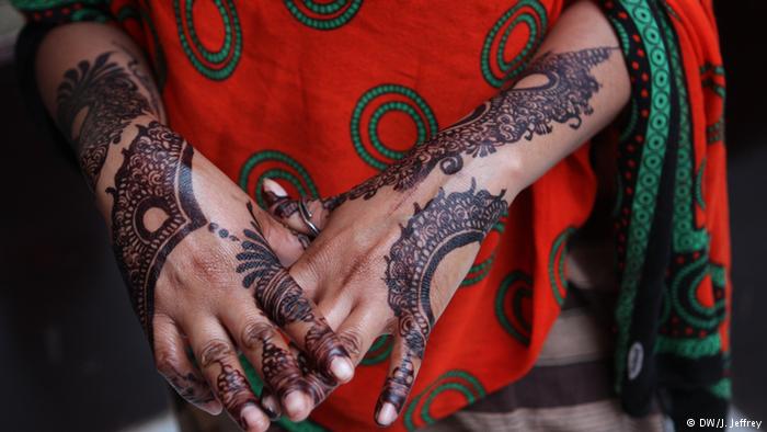 At another market henna stall a young women rests her arms on her legs, letting the recently applied henna dry. In addition to the Horn of Africa, henna has been used for centuries in parts of North Africa, the Arabian Peninsula, the Near East and South Asia. Henna is also used to decorate feet and to dye finger and toe nails, fingertips, palms of hands and soles of feet.