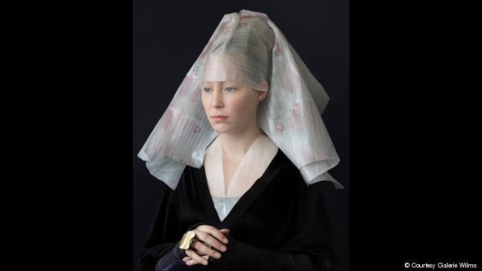 At first glance, Jongmans’ photo “Mind over Matter — Julie, Portrait of a Lady” could be mistaken for von der Weyden’s mid-15th century Dutch masterpiece “Portrait of a Lady.” But look closely: The sitter’s veil is made of packing materials, her ring is a can lid, and her bodice is held closed by a single sewing pin. Jongmans’ use of recycled materials reflects on how we gauge value and beauty.
