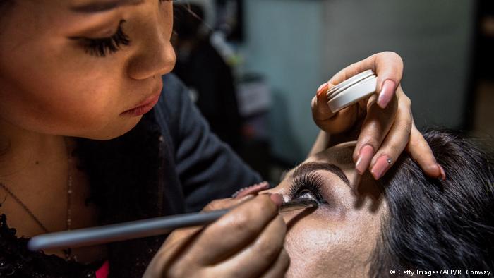 Make-up that challenges traditional Afghan notions of decency is favoured: foundation caked on, eyes framed in false eyelashes and iridescent, bold powders.